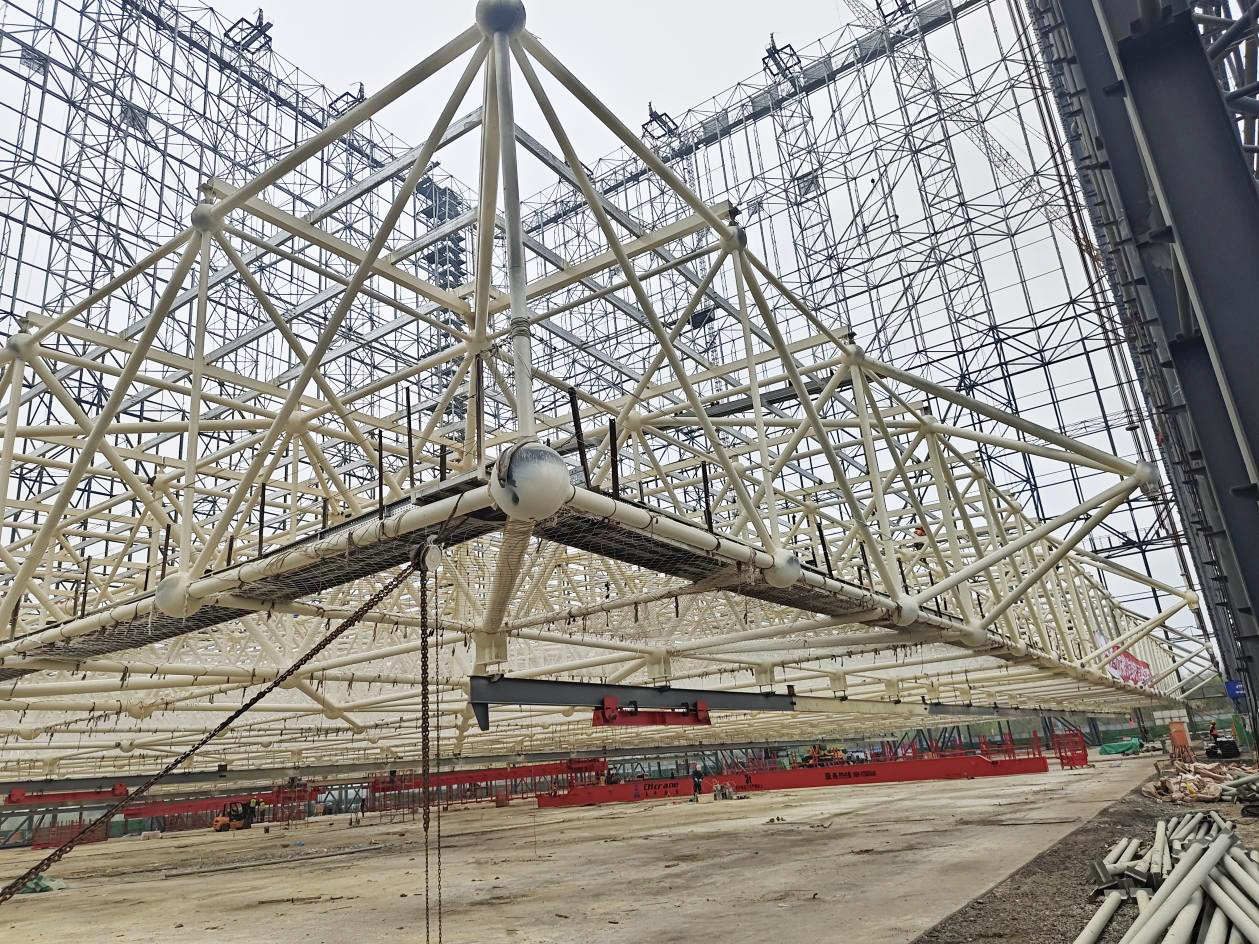 该位于安徽省合肥市,总建筑面积21000m²。由A区和B区两个试验区和若干内附楼组成,其中A区竖向支承结构采用巨型框架-支撑结构体系,为超高大跨度单层工业建筑,平面内轴线尺寸131mx110m,下弦中心标高110m,总高度118m,建筑面积约14686m²,建筑层数为一层;B区厂房平面轴线尺寸52.5mX110m,网架下弦,中心标高30m。主要包括 H型钢柱、四肢格构柱及屋盖网架。屋盖采用正交正放焊接球网架、B区上部结构采用钢格构柱+钢网架结构形式体系,建筑面积6004m²,总高度为37m。两个实验大厅均为钢结构形式。建成后将主要用于打造国际领先的强电磁环境试验研究,对于推动我国科技进步和产业发展具有重要意义。